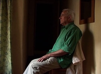 In a dark room with a chair with a white shirt hanging on it and a mirror on the wall, we hear the sound of a washing machine. A man wearing a green shirt then enters the room and sits down. An old chanson song can be heard from somewhere in the room, and the man then fades out of the frame. The shot of the empty room continues for a while, and then suddenly a black screen is connected, and the next moment the man is shown entering the frame from the left edge of the shot showing the wall with the mirror, and then quickly fading out again. When the title screen appears, with white text on a black background, the camera then shows a hand closing the curtain on the mirror, the camera then moves to the window where the sunlight is streaming in, and we see a shot of a hand opening the curtain, and then a shot of the man's upper body stopping and fading out of the frame into the darkness at an angle of about 90 degrees to the previous shot. The man then moves into a shot of a chair and the mirror behind it, and before we know it he is wearing the white shirt that was on the chair until a moment ago, and the green shirt he was wearing until a moment ago is draped over the back of the chair. After the man sits down and remains still for a while, the camera angle changes to a shot taken directly from the side, and the man is shown wearing the green shirt again as he enters the frame. The wind sways the curtains, and after a brief insert of the mirror image, the man exits the frame again. The curtains are closed, the camera returns to its original position, and the man is again sitting in the chair. The chanson starts playing again from somewhere, and the man exits the frame again (a repetition of the first action). Then, suddenly, the pool scene is superimposed on the window curtain in an overlap, and the camera moves slowly across the scene, something that is rarely seen in Rousseau's works. The man leaves the room again and then returns immediately. The sound of the washing machine can be heard coming from the pool scene superimposed on the window. Following the composition, the man in the white shirt stands up and leaves the frame, and the man who comes back into the frame is wearing a green shirt. In the following scene, the man changes his shirt from white to green and leaves, but he soon returns and hangs his white shirt back on the back of the chair, and leaves the frame again. Then, the song can be heard again...